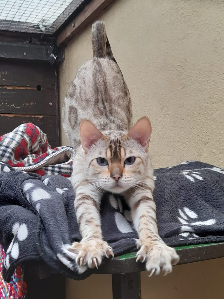 She will need a home where she is the only pet so that she has space and also the attention and devotion to herself. She will prefer a home with adults only. A home with experience of the Bengal breed is preferred as her behaviours do differ from the average moggie.