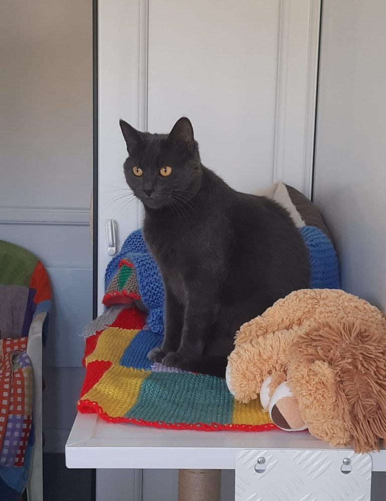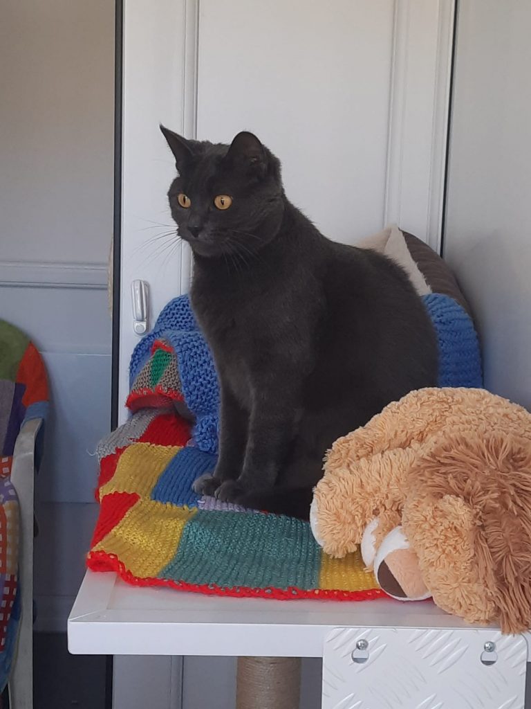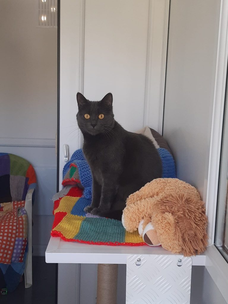 She is lovely but can be wary and unsure at first, or even show a false confidence, but soon lets you fuss and chat with her. Being young she likes to keep busy. She is playful, affectionate, gentle and talkative. She likes to nose about exploring her surroundings.