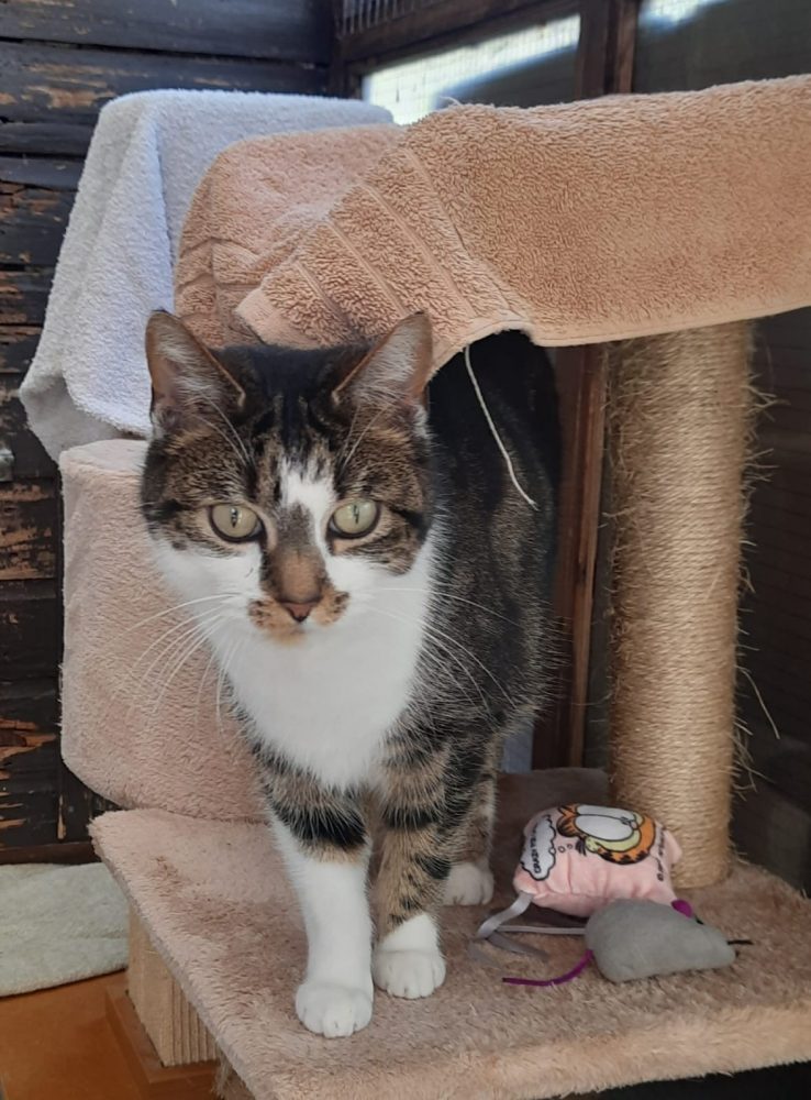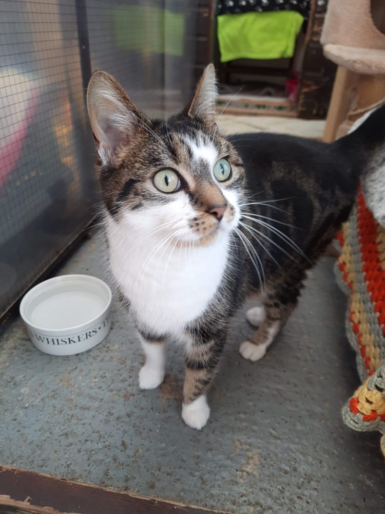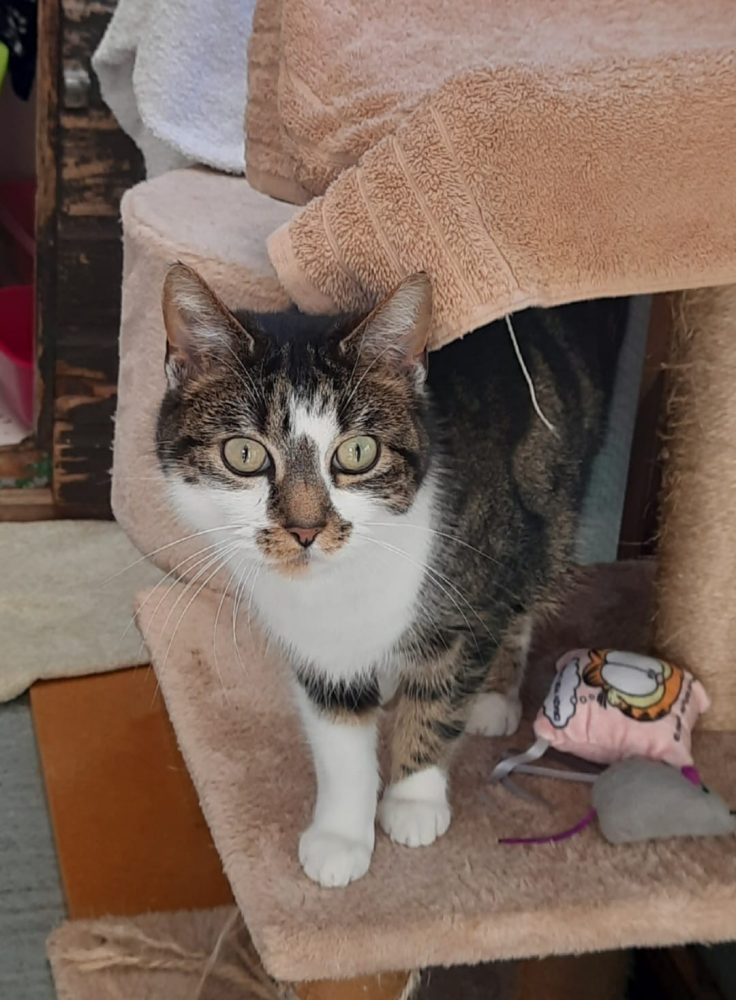 Bella is a lovely friendly tabby and white female.