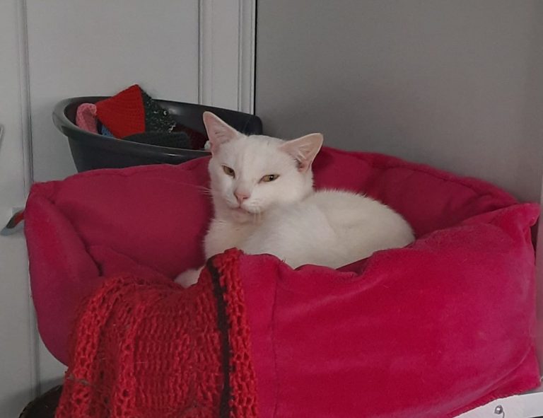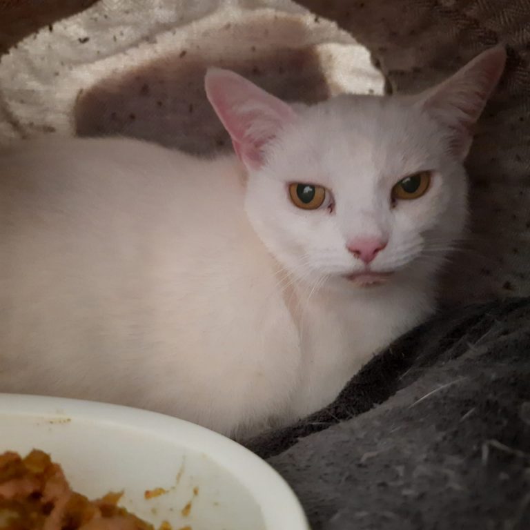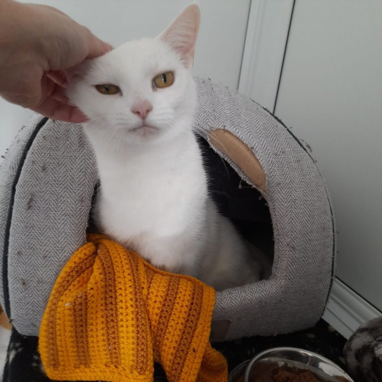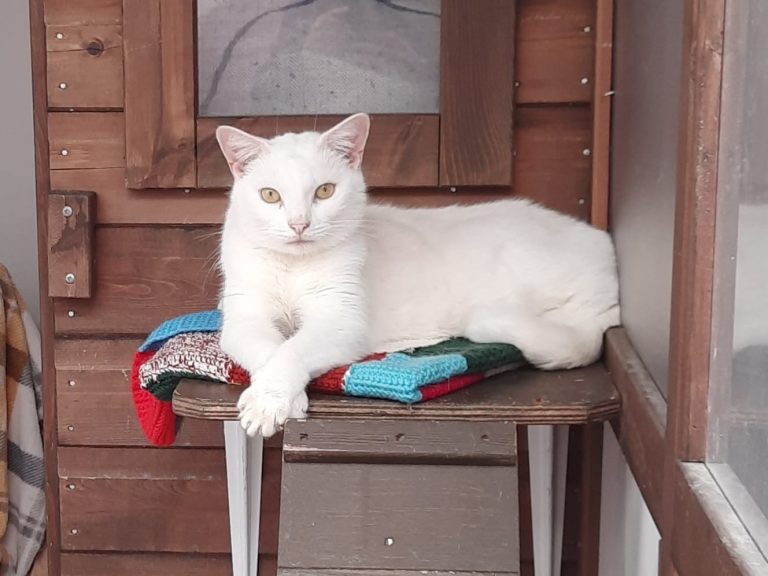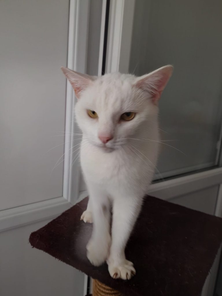 Both being white, they will need pet safe suncream when the sun is strong, on their ears and noses so as to protect them from sun damage that can happen with white cats. However, they are very gentle and well behaved which makes applying sun cream easier. Both love to be brushed as well and have the best purrs.