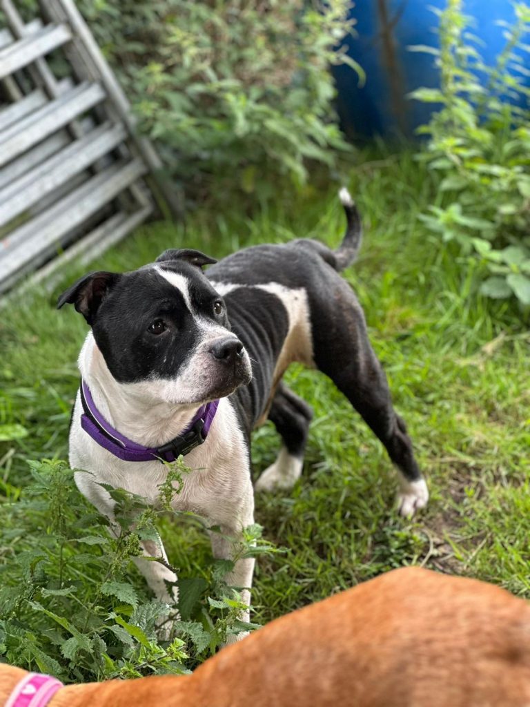 Chunk and Lulu are a bonded pair of Staffordshire Bull Terriers who have spent their entire lives together. At 10 years old, Chunk is a sweet, cuddly boy with a heart full of love, while 9-year-old Lulu is calm, gentle, and always by his side. These two have been through a lot together, having been rescued from unfortunate circumstances, but their bond has only grown stronger.