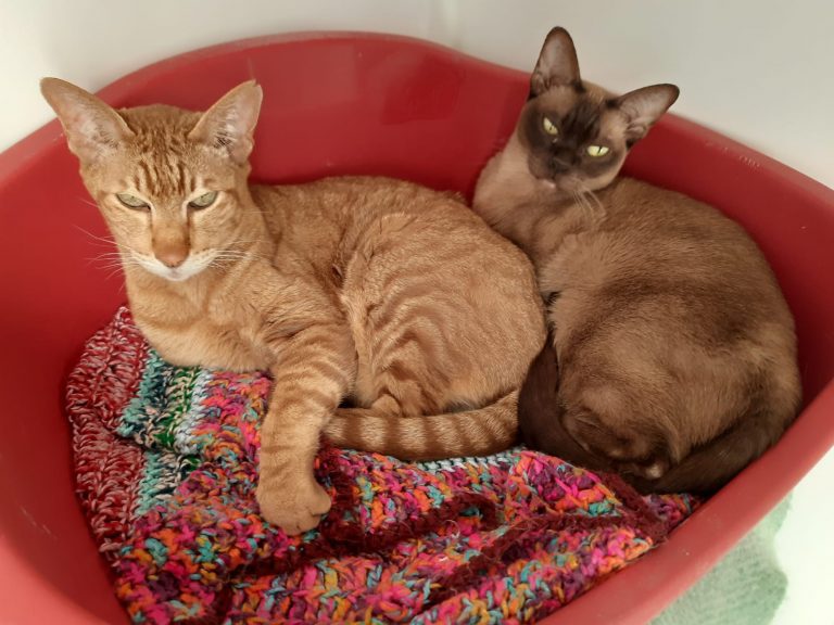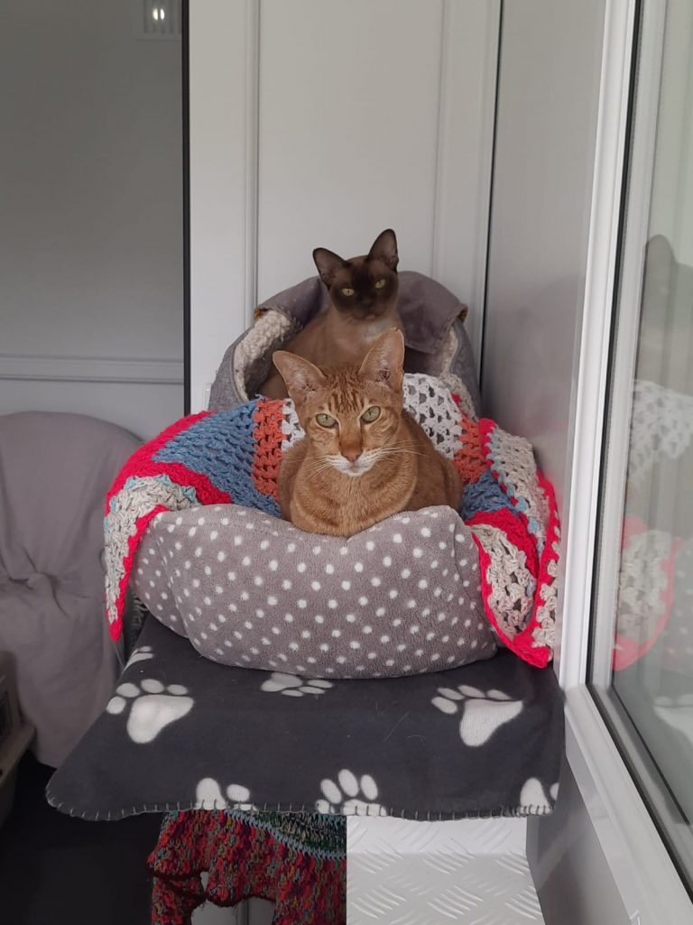 The pair are used to living indoors with a smallcatio, so something similar or a quiet garden at this point in their lives would be lovely for their retirement. The most important for them is that they will have lots of loving care and company.
