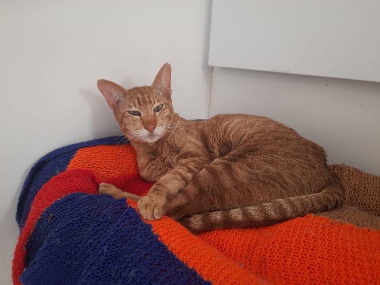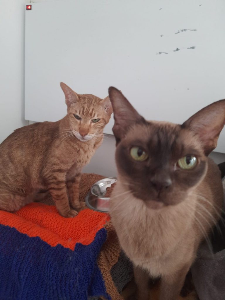 Elsa is the ginger Oriental female. She is 15 years old. Elsa is super cuddly, caring affectionate and chilled. Unfortunately she has mammary tumours on her belly and we are looking for someone willing to give her ongoing care, be it as adopter or as a supported adoption for this amazing pair. This would be very rewarding as they are such sweet, loving cats. At the moment she is doing well and enjoying her time with her friend Coco and new people she meets here.