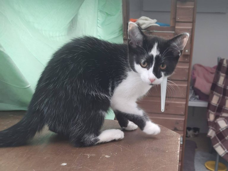 Cookie is vaccinated, de-flead and wormed. She must be kept indoors until she is neutered and microchipped, which MUST be done at four months old and we can provide help with this. Cookie will need extra careful owners who can keep this cheeky kitten safe indoors in the meantime.