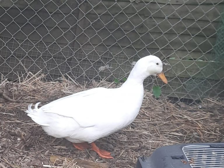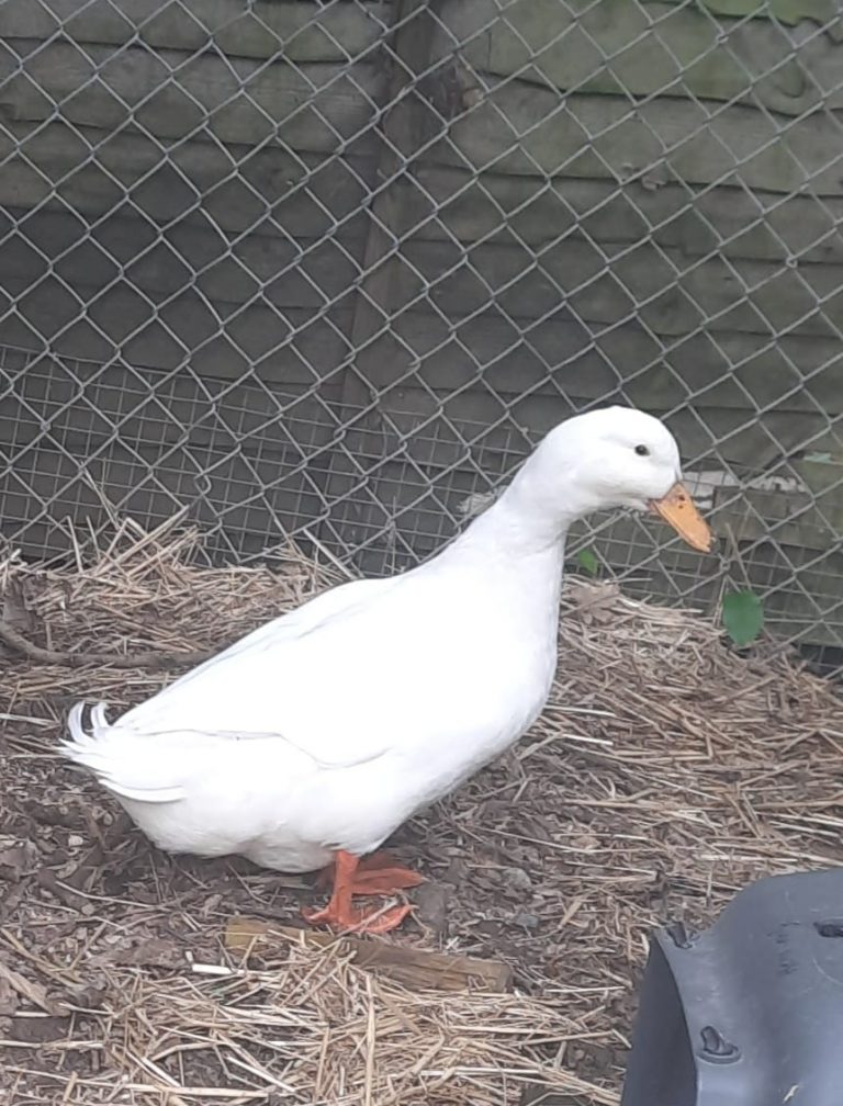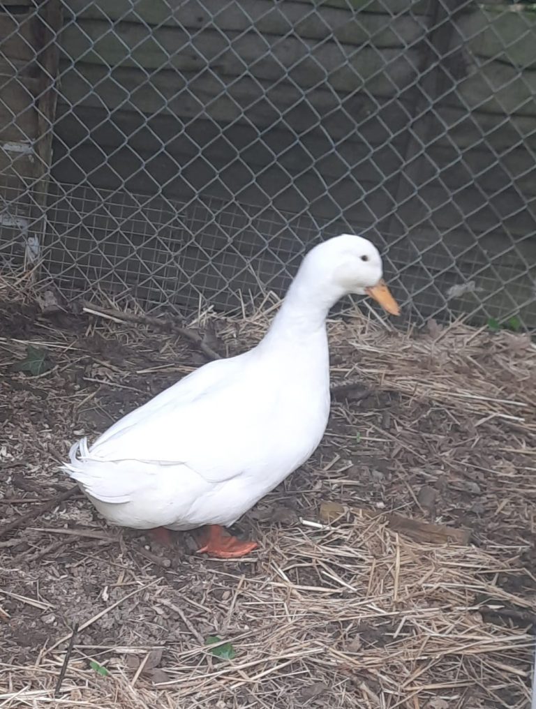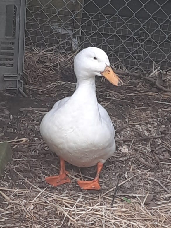 Eric is a male Pekin duck who was found straying or dumped in a field and has not been claimed. Because of this we don't know how old he is, but he is a healthy, happy little gentleman.