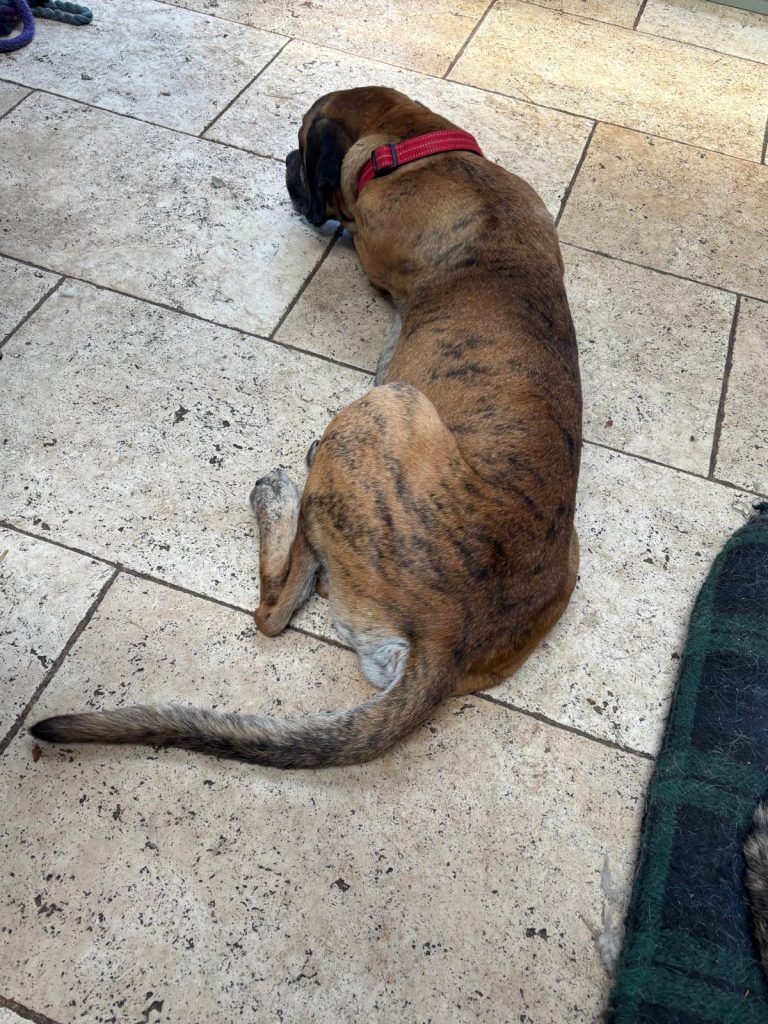 Jackson is a 5 year-old simply stunning neutered male Spanish mastiff. He is on the smaller side for his breed . He has impeccable manners and will love his human dawn till dusk! Jackson would prefer to be in a home where his human was present for most of the time and so he will probably suit someone working from home or someone who has retired. He would prefer not to be in a home with young children. Potentially, he might like another four legged female companion although a placid male dog might also suit him as a friend . He is good with cats . Jackson likes to play and go for long walks. He just use oozes happiness. He loves his quiet time too and will curl up into the tiniest balls in the tiniest of dog beds ! Jackson is currently in foster care where he’s very happy and settled. He now needs that extra special forever home ! ❤️