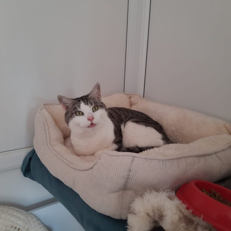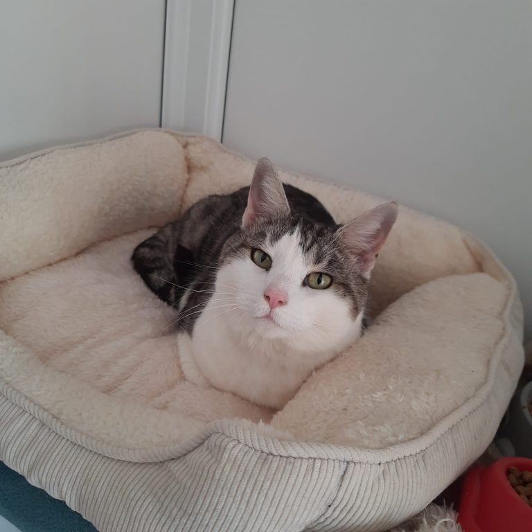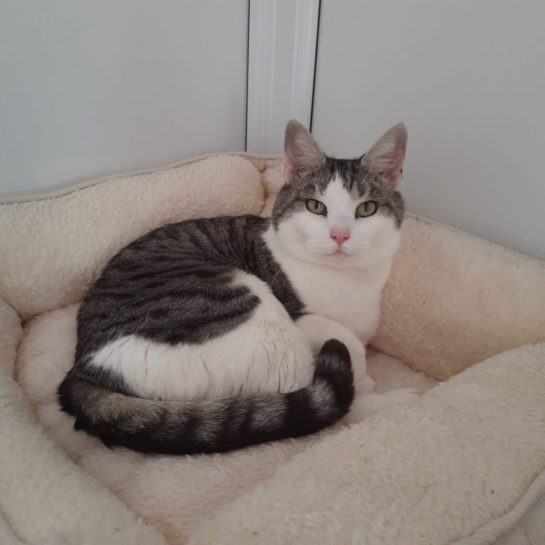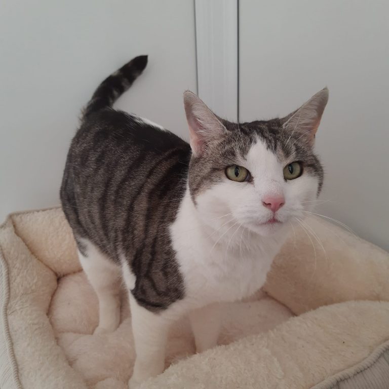 She is a cat who seems young for her age and still loves to play a lot, so she could benefit from the company of older kids or teens if they are of a quieter and calmer nature. She is gentle and loves a fuss as well.