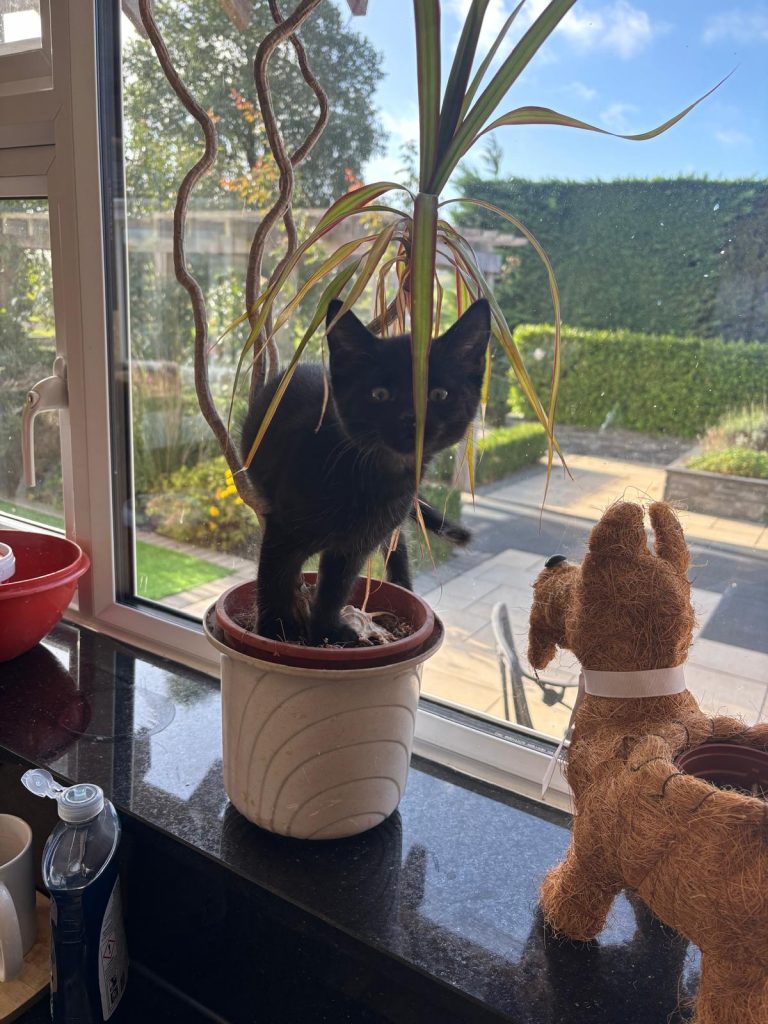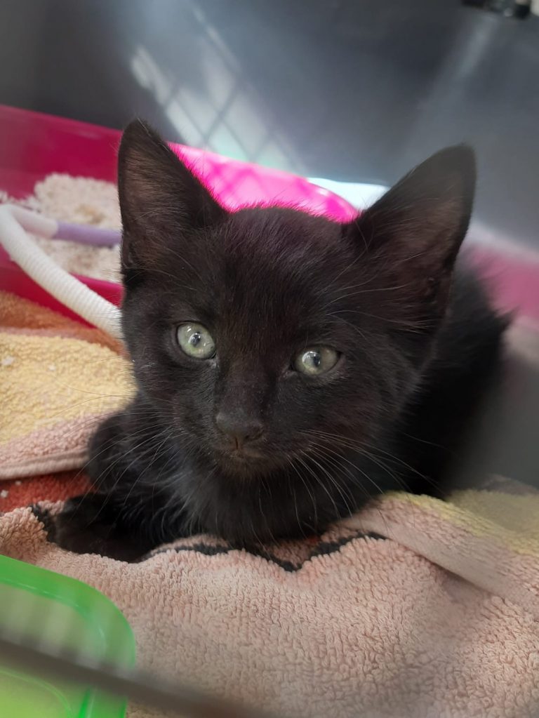Pickle is a black male kitten thought to be around 10 weeks old.