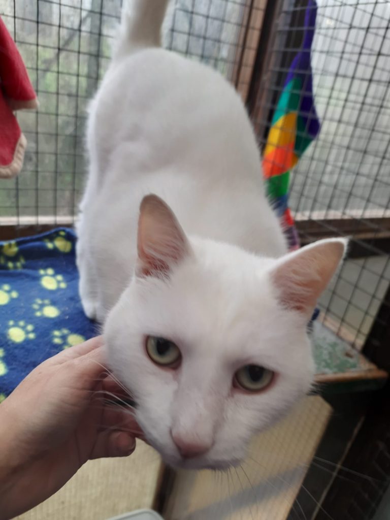 He is very affectionate and will come for lap time, but is a sensitive chap. He needs to live in a calm home with stability and some routine and reassurance. He will need a home with quiet teenagers or adults only and no other cats or dogs as this would be too stressful for him.