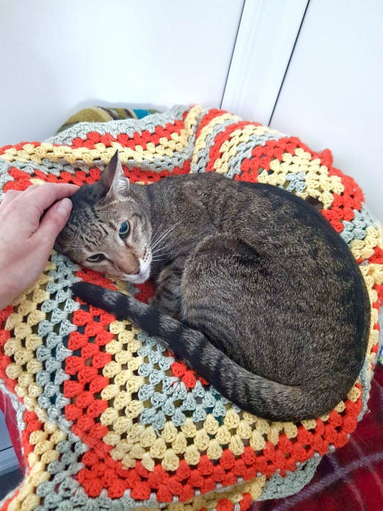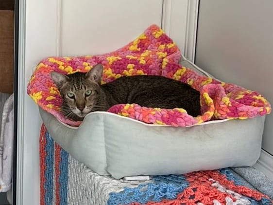 Stella is a shy, gentle Oriental tabby cat. She is thought to be around 10-13 years old.