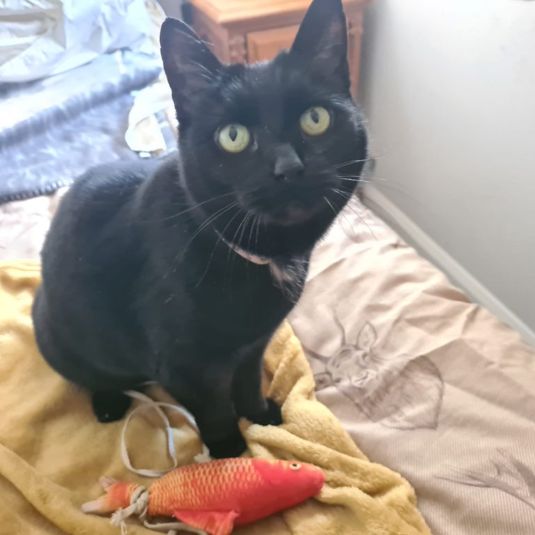 She loves to chill out and play at home. She is shy to start but in time builds her confidence with her people and enjoys one on one fuss and affection.